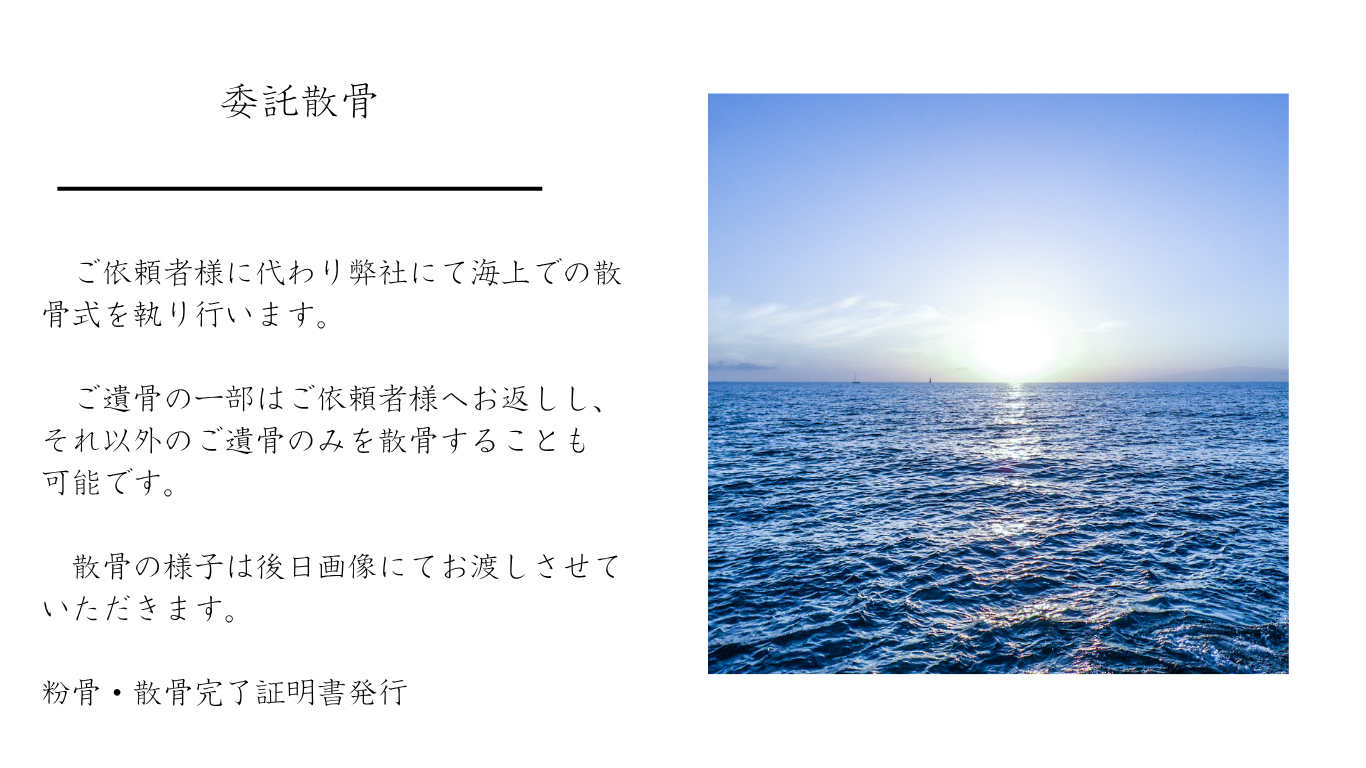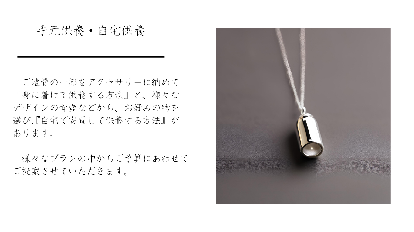 次の世代にも優しい手元供養や自宅供養、また近年ご希望される方が増えている散骨などご希望に沿ったご提案をさせていただきます。